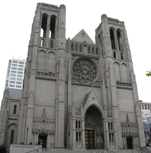 格雷斯大教堂被认为是旧金山所有教堂之首,坐落在诺布山(Nob Hill)山顶,是美国第三大圣公会教堂。此教堂仿巴黎圣母院建造,是一座纯粹而严肃的完美哥特式建筑。教堂内给人以神秘而宁静的感觉。其中的曲径、“天堂之门”、彩色玻璃窗、中世纪装饰,以及它的唱诗班和风琴都吸引着世界各地的游客前来参观。